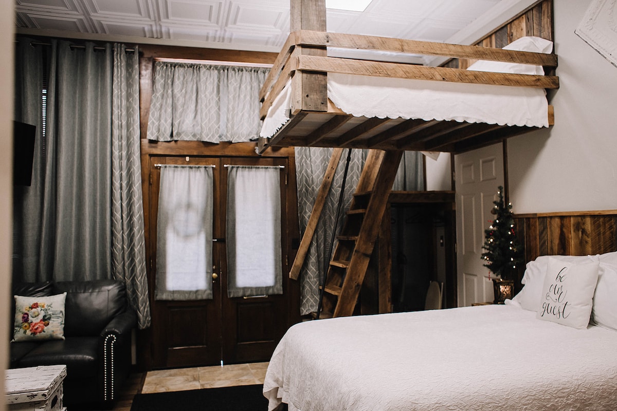 Experience luxury at an affordable price in downtown Webb City's Crow's Nest! This meticulously cleaned and renovated loft features a Nectar mattress, comfy chairs, classy bathroom, and a fully equipped kitchenette. It's 2 minutes off 249, close to boutiques, food, trails, theater, and the Praying Hands. Only 15 min to Joplin or Carthage. High-speed internet, pet-friendly, laundry, and a fenced yard. The Crow's Nest offers the most lavish and economical stay in Webb City. Book now!