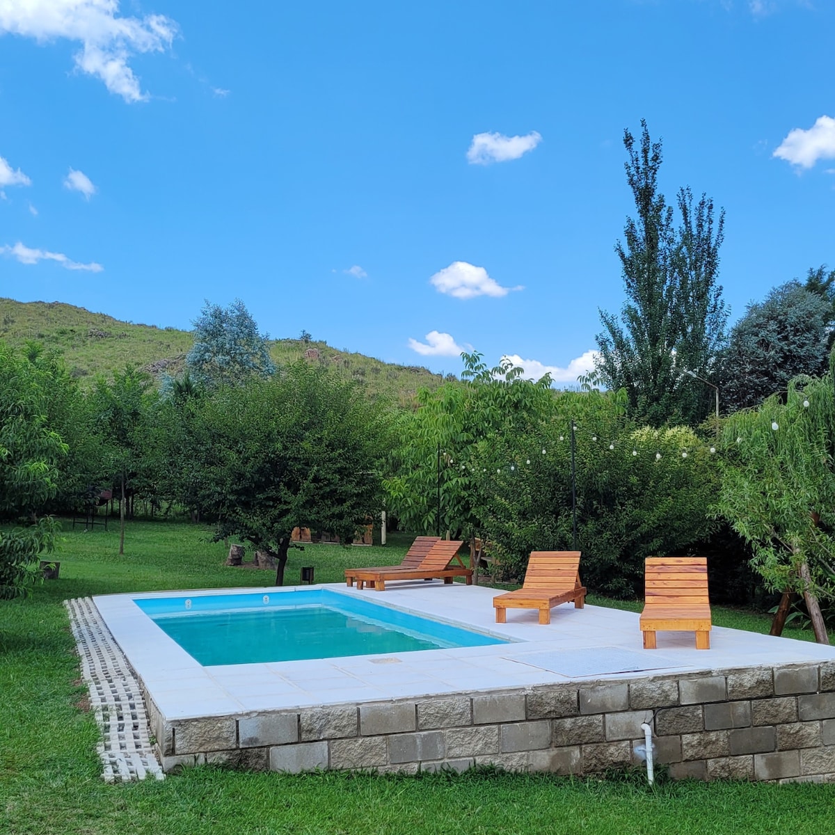 Дизајнерска дрвена колиба со голем парк и базен на еден час од градот Кордоба и десет минути од градот Алта Грација. Сопствено земјиште за ексклузивно користење од 2000 м2. Опремено со кујна, микробранова печка, машина за миење садови, клима уред, паметен телевизор со Netflix, Spotify итн. Исто така, има скара и рерна на дрва во галерија. Се наоѓа на 100 метри од реката Ксанаес. На пет минути од трговскиот и гастрономскиот центар со супермаркет, материјали, барови и типични ресторани.
