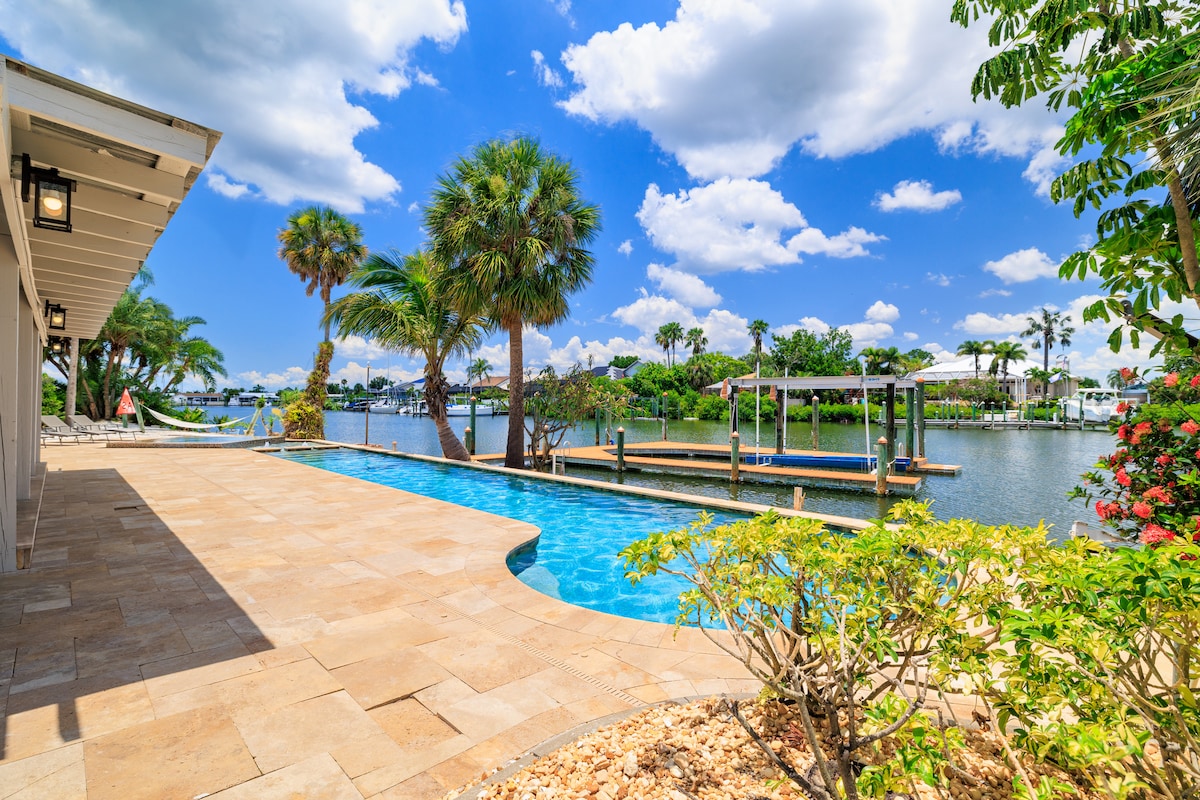 Избегајте во овој дом покрај базен - совршен за семејства или групи кои сакаат да се опуштат и повторно да се поврзат. Со 4 спални соби, 2 кујни, игротека и приватно пристаниште, има простор за сите да се опуштат. Пливајте во базен, печете скара во дворот или уживајте во филмската вечер во една од двете дневни соби. Само 30 минути од Тампа и минути до плажи, пристаништа и ресторани на брегот. Ова одморалиште погодно за кучиња го нуди летото во Флорида што го заслужува вашето семејство.