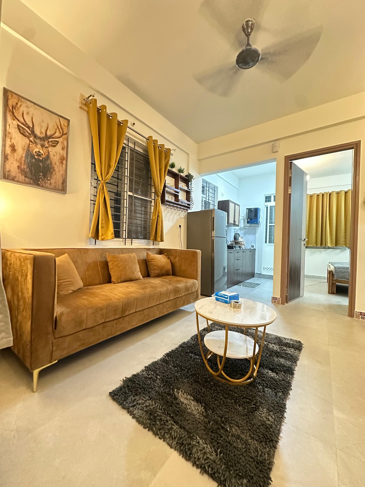 Добре дојдовте во нашиот стан во Лејквју! Искусете модерна удобност во мирниот амбиент на Бангалор. Опуштете се во нашиот удобен стан од 2 BHK со клима уред (во една спална соба). Уживајте во непречен пренос со wifi од 100 MB/s. Уживајте во удобноста на бесплатниот паркинг за автомобили, достапен во просториите, што го прави патувањето без напор. Уживајте во бесплатен чај и кафе и одморете се на премиум душеци со квалитетна постелнина. Шампонот и гелот за тело се обезбедени за престој без грижи. Уживајте во удобноста и удобноста во најдобро светло!