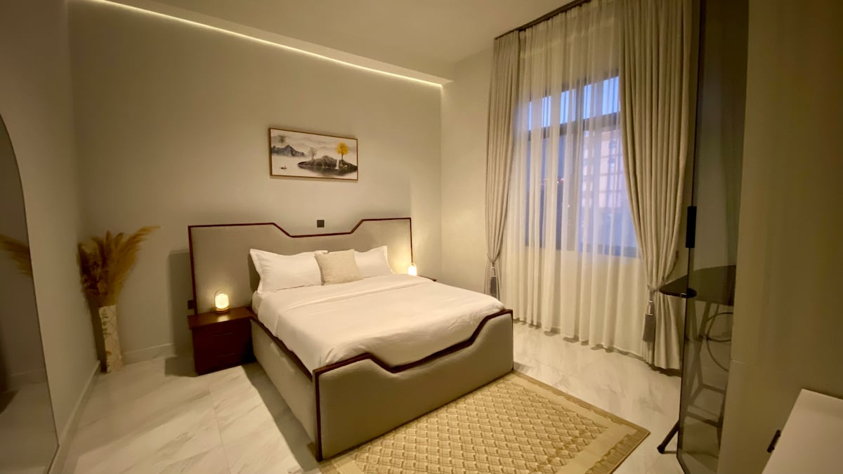 Опуштете се и релаксирајте во овој елегантен стан со 1 спална соба на горниот кат (3-ти кат). Уживајте во мирен престој со прекрасен поглед од балконот, брз Wi-Fi и целосно опремена кујна. Само неколку минути пешачење од ресторани, супермаркети, сала за вежбање и сите главни удобности. Совршено за одморници, деловни патници и парови кои бараат удобност, практичност и стил – вашето совршено градско патување ве очекува