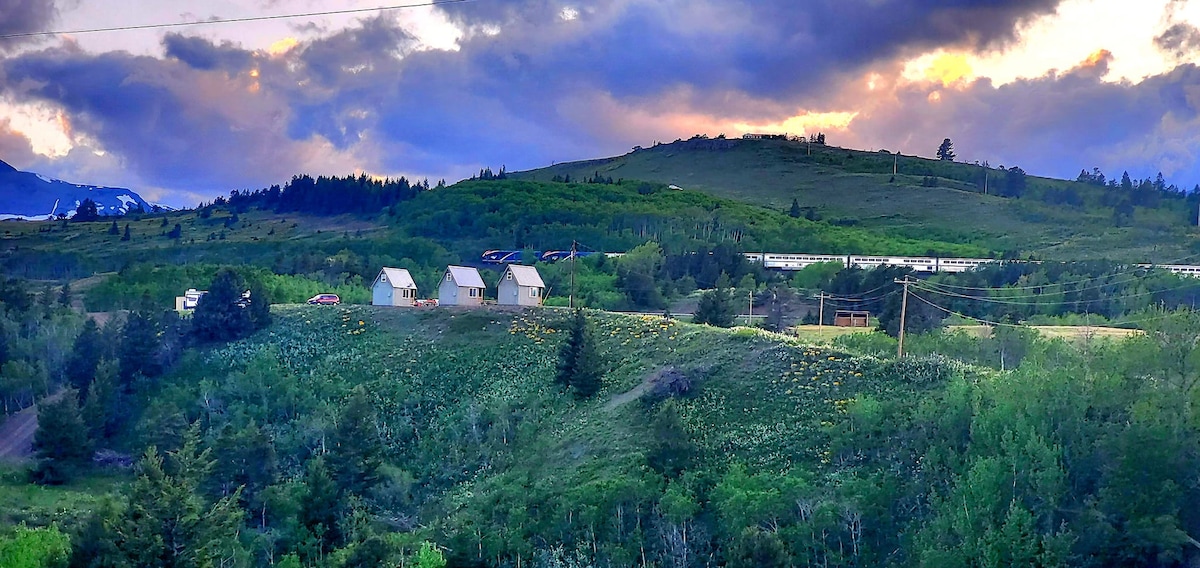 Фантастична дрвена колиба на само неколку минути до блискиот национален парк Глечер. Дојдете да уживате во мирните погледи и нашиот водопад. Оваа дрвена колиба има одличен поглед кон планината во една насока, а рамнините во другата, сместени во подножјето на Карпестите Планини. Можете да пристигнете на влезот од две лекови на националниот парк Глечер за само 10 минути. Опуштете се со нас! Имаме и две други дрвени колиби за изнајмување на имотот во случај да имате поголема забава или настан и барате малку повеќе простор.