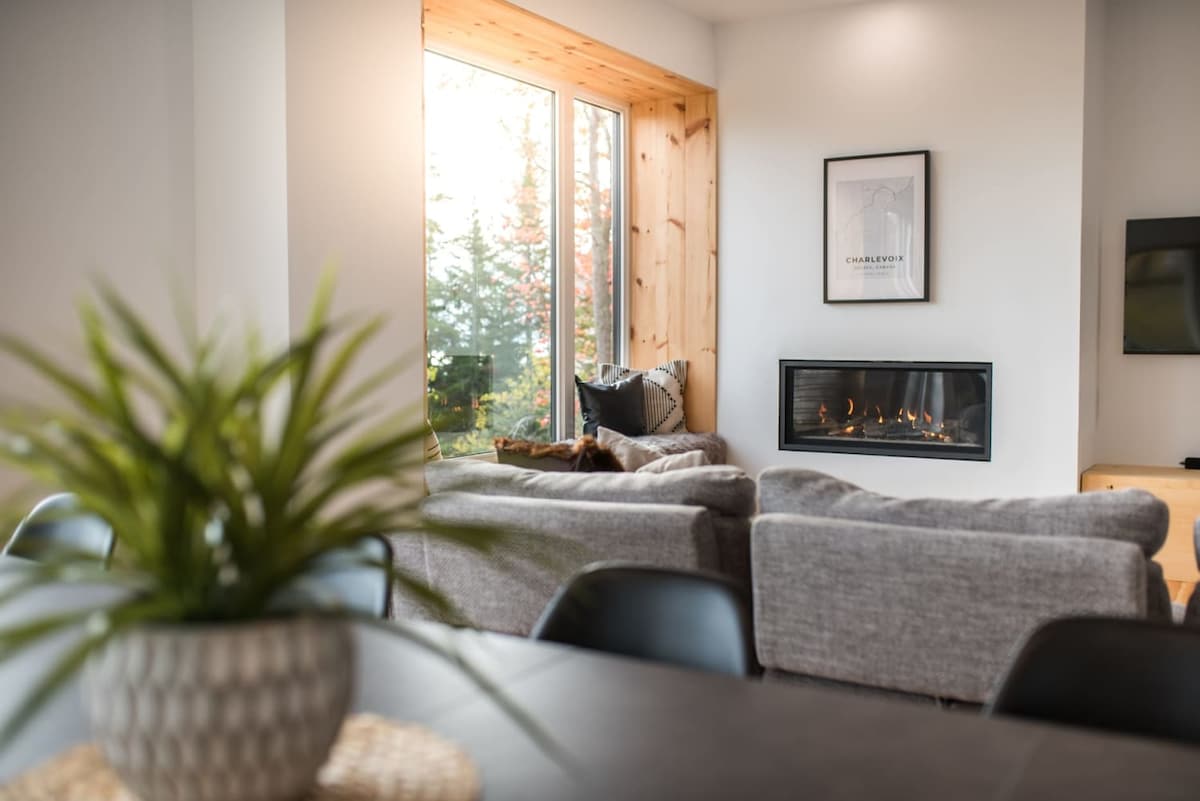 Добре дојдовте во „RidgeView“, минијатурна куќа од висока класа сместена на врвот на планината. Уживајте во извонредно доживување во природа на само 30 минути од Квебек Сити. Почестете се со неверојатен поглед на долината и планините, како и со неверојатни зајдисонца од највисокиот врв на Лак-Бопорт. Истражете ја уникатната топографија на планината така што ќе ги поминете рекреативните патеки достапни во која било сезона, откривајќи природен рај на секој чекор од патот.