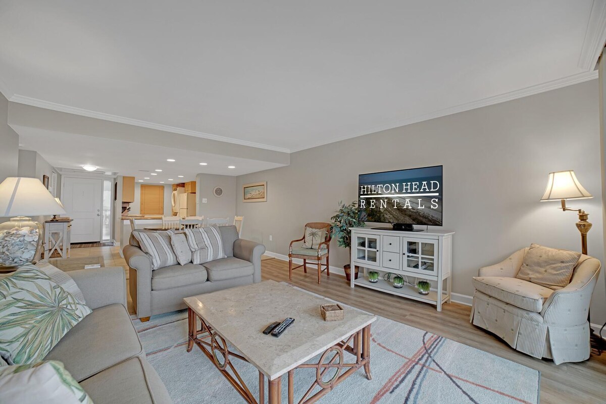 Сместен во затворениот, океански преден дел на Hilton Head Beach & Tennis Resort, овој удобен кондоминиум е само на 4 минути пешачење до плажа и базен. Уживајте во барот на плажа, спортскиот бар, тениските/терените за туршија, фитнес собата и изнајмувањето велосипеди. Опремено со целосна кујна, брачен кревет, кауч на спуштање. Идеално одговара за две возрасни лица (максимална пополнетост 3). Обезбеден е стартер комплет прибор за лична хигиена/крпи. Пералница на лице место. Резортот се наоѓа во близина на целата забава што ја има островот за вас! *Дополнителни надоместоци за чистење за месечни престои.