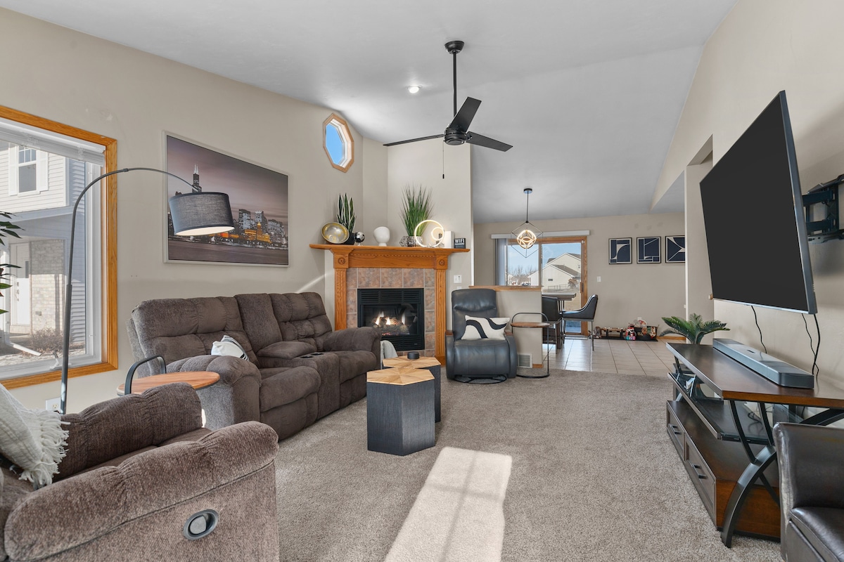 Гостите мора да се пријават лично. Дом на ранч со 4 спални соби со тераса и двор во пријатно соседство со тротоари. 3 целосни бањи, една со преголема џакузи када. Големи забавни простори како на главниот кат, така и на целосно завршениот подрум со мокар бар, винарска визба и водопад. Има два камина и огниште на отворено. Оваа куќа не е погодна за деца на возраст помеѓу 2 и 12 години. Нема интернет. Лесен пристап до I-43 на околу 25 милји до Грин Беј или Колер.