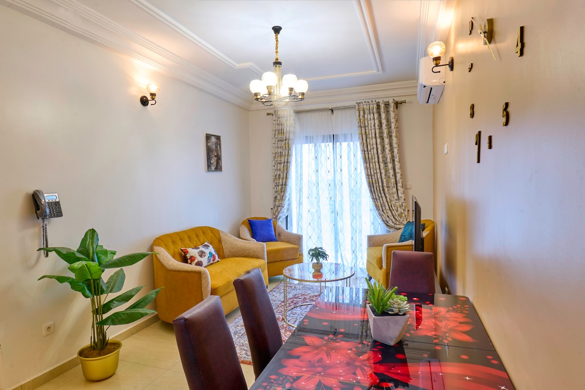 Опуштете се и уживајте во Дуала во овој тивок, елегантен стан: - Топла и елегантна дневна соба - Ортопедски душек - неограничена wifi врска - Netflix и локални канали - Топла вода во сите соби - Целосно опремена модерна кујна - 5 минути од банки и супермаркети - Бесплатен паркинг на лице место - 7/24 обезбедување - Достапна е услуга за собарка - клима-уредот е достапен низ целата куќа - Градинарски балкон со лулашка и поглед на градот - Припејд мерач за електрична енергија