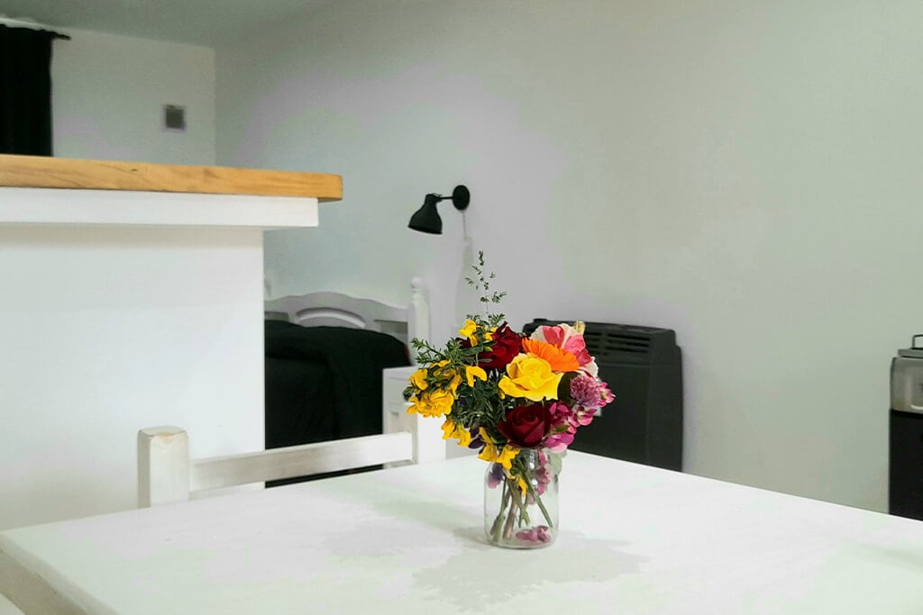 Te invitamos a descubrir nuestro luminoso monoambiente, rodeado de exuberante vegetación y coloridas flores. Estrategicamente ubicado, se encuentra a solo 300 metros de la avenida principal, a 100 metros del Museo de Historia y a 500 metros de la Reserva Nimes. Todo en el llano, lo que te permitirá disfrutar de un entorno ideal para caminar sin subir ni bajar pendientes. Disfruta de la tranquilidad y comodidad que ofrecemos en este rincón especial de El Calafate.