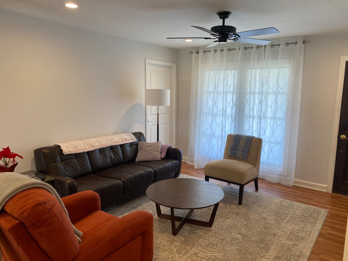 Се наоѓаме во историското соседство Фермаунт, на само 10 минути пешачење од Магнолија. Просторот е модерно, новоизградено студио над гаража со заоблени тавани, целосна кујна, трпезарија, двор, центар за забава, брачен кревет (широк 150-179 см) и бања со туш кабина. Има многу удобности како што се посебен wifi портал, пристап до услуги за стриминг, душек Leesa, премиум кафе и многу повеќе! Нашата цел е да се чувствувате пријатно и како дома за време на вашиот престој!