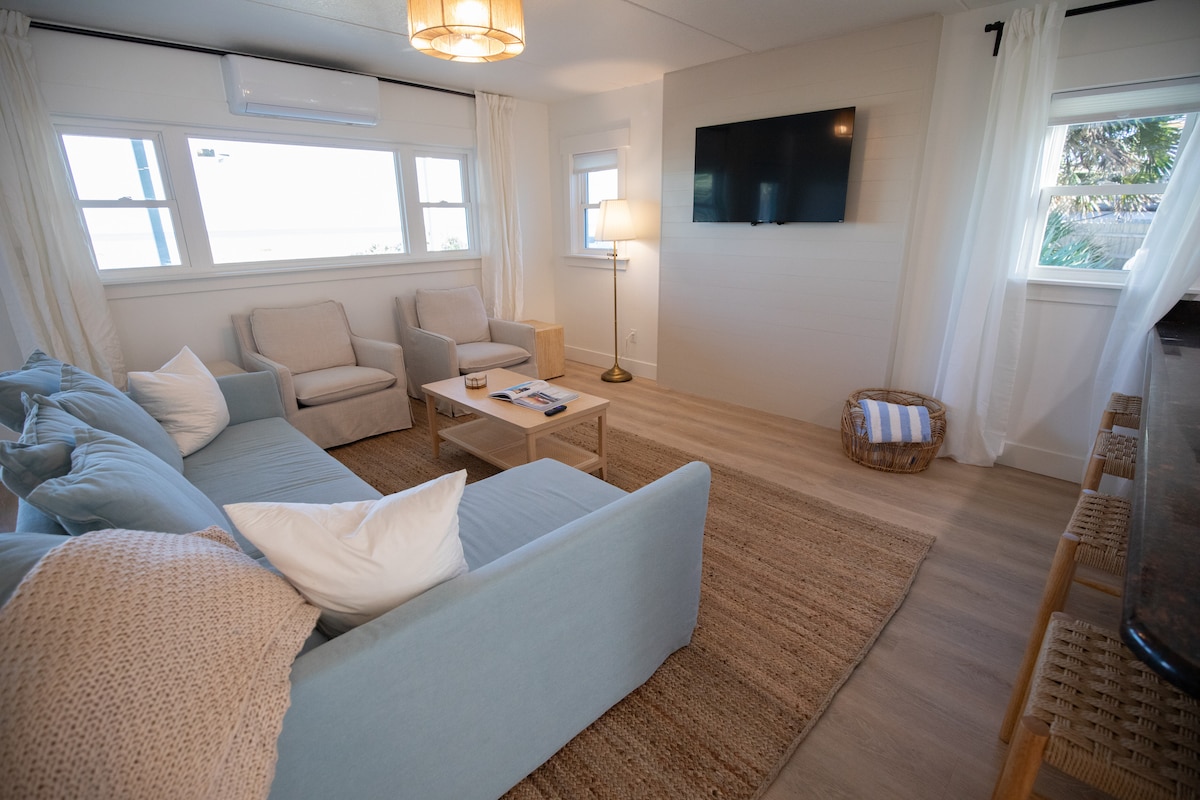 Добре дојдовте во совршеното крајбрежно место за одмор! Овој прекрасен дом со 3 спални соби и 2,5 бањи може да преспие до 8 гости и е директно на плажа - нема патишта за преминување, само излезете низ задната врата и одете на песок. Задната тераса што го одзема здивот со поглед на Атлантскиот Океан - совршена за изгрејсонце или едноставно опуштање на звукот на брановите. Исплакнете по пливањето во удобниот надворешен туш погоден за семејства. Ова е повеќе од куќа на плажа - тоа е вашиот дом далеку од дома, каде што се создаваат незаборавни спомени.