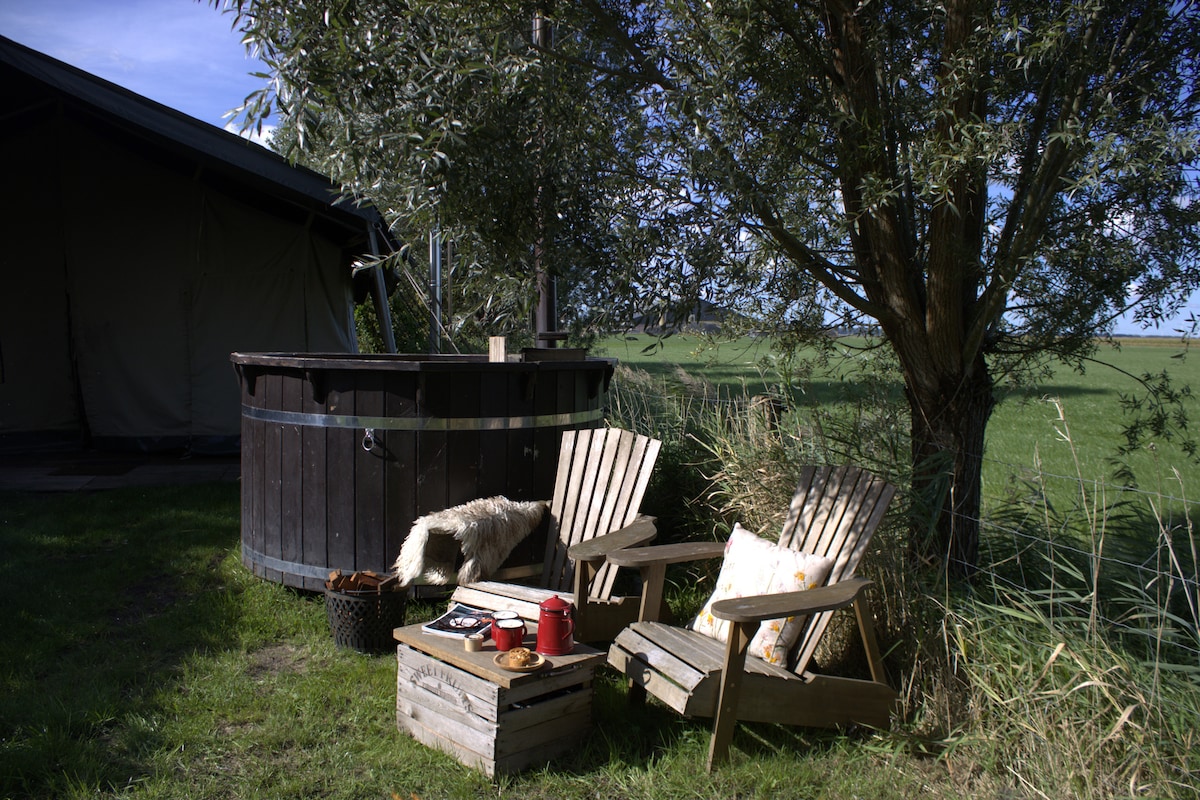 Офгрид шаторска куќа со хидромасажна када - Landhoeve Veluwe