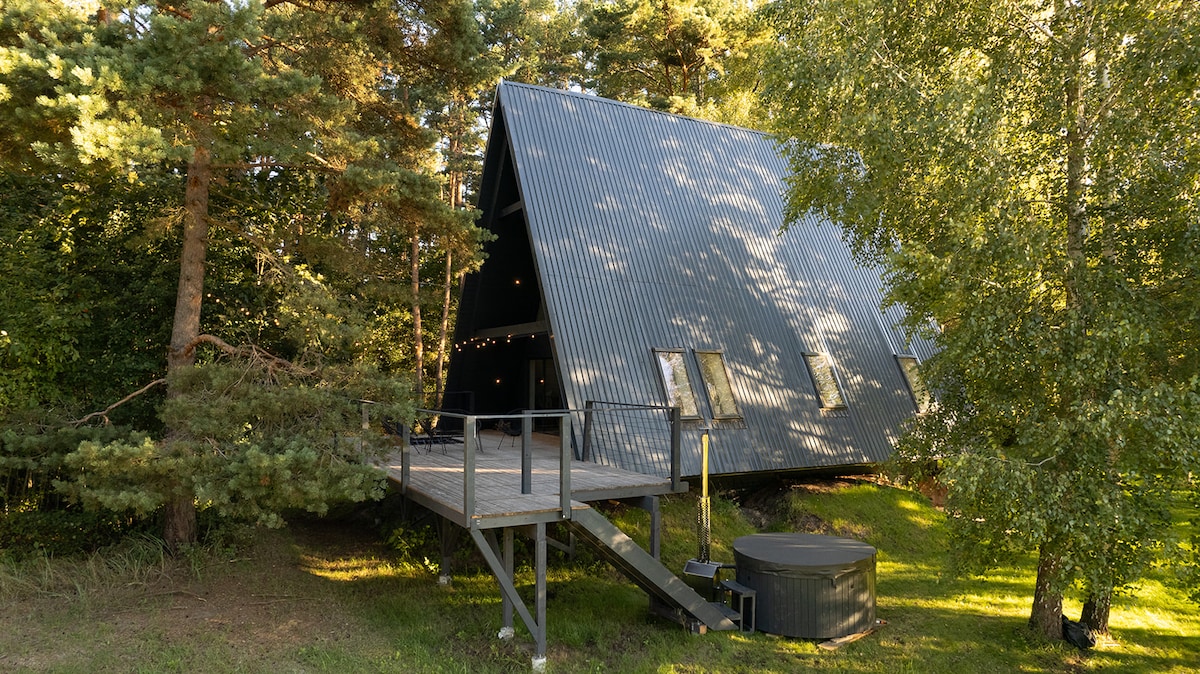 Дизајнерска колиба Sniegi со сауна и џакузи