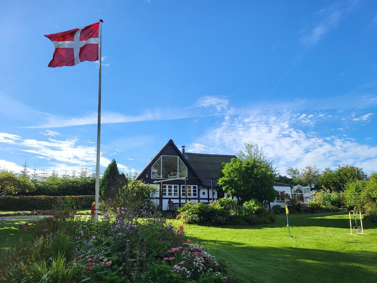 Omgivet af træer og marker ligger det charmerende og romantiske bindingsværkshus fra 1780. Her ånder der fred og ro i ren Morten Korch stil. Huset er indrettet lyst og landligt. I stueetagen finder du køkken/alrum, badeværelse og soveværelse. På 1. sal er stor stue i åben forbindelse med soveværelse. I den store og frodige have kan du lege og lave bål, eller gå rundt og plukke bær, frugter og krydderurter til maden. Aktiviteter: Legoland og Lalandia. Juelsminde Marina og Naturlegeplads.