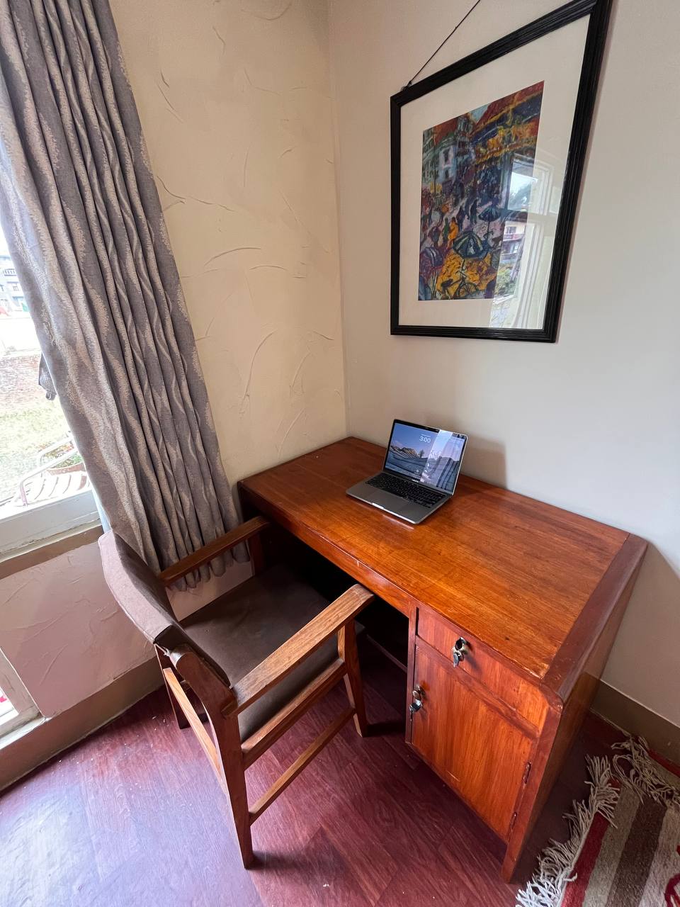 Влезете во царство каде што богатото наследство на Непал беспрекорно се испреплетува со современ дизајн, создавајќи соба која емитува безвременска елеганција и културен шарм. Нашата стара традиционална соба во стилот на Непали со модерен допир нуди уникатен спој на историја и иновации. Дрвените греди кои го красат таванот, а рачно изрезбаните дрвени столбови ја прикажуваат мајсторството што се пренесувало низ генерации.