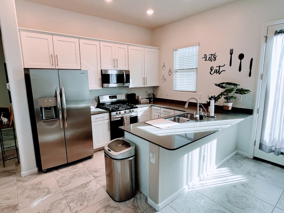 Вашиот дом без стрес Бања со 3 спални соби и 2 бањи (1 брачен кревет (широк 180-220 см), 1 брачен кревет (широк 180 Исчистете ги перниците и постелнината. Сите кујнски апарати се подготвени за ваша употреба. Имотот има WIFI. Задниот двор е новоуреден, со скара одлична за дружење со семејството. Сите спални соби имаат паметни телевизори + дневна соба. Блиску до сѐ 1) Намирници на Фрај - 5 минути 2) Цел - 5 минути 3) Супер Волмарт - 9 мин. 4) Goodyear Ball Park - 6 мин. 5) Меѓународна патека Феникс (PIR) - 18 мин. 6) Стадион на државната фарма - 19 мин.