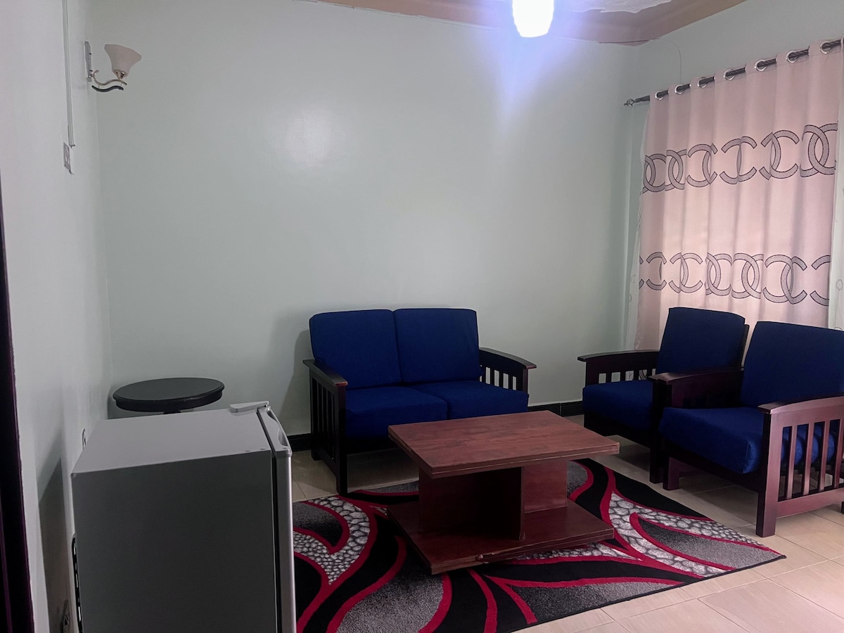 Ова е прекрасен простран ,шармантен стан опремен со студио и со дополнителни услуги во срцето на Ентебе, веднаш до преку кафуле за патници преку. Нудиме бесплатен појадок по цена од 10 $. Совршено за одмор преку викенд ,одмор. Неповторлива локација на само 15 минути од меѓународниот аеродром Ентебе. Целосно функционална кујна , брачен кревет (широк 150-179 см), машина за перење алишта, приватна бања, 65-инчен телевизор ,Netflix и безжичен Wi-Fi. Климауред, деноноќно обезбедување со надворешни камери и генератор.