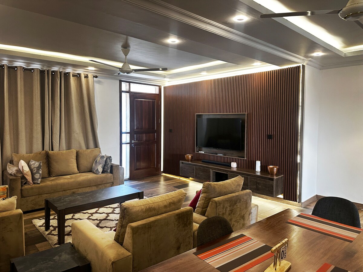 Уживајте во стилско доживување во ова мирно и централно лоцирано место и на 12 минути возење од аеродромот. Секоја сопствена спална соба е поставена во прекрасна естетика за вашата релаксација. Се одликува со стилски и минималистички дневен и трпезариски простор и целосно опремен со сите модерни удобности што ви се потребни за да се чувствувате како дома; брз Wi-Fi, телевизори со рамен екран со кабелски канали, клима уред во секоја соба, со целосно опремена и пространа кујна со сѐ што ви е потребно за да ги подготвите омилените оброци.