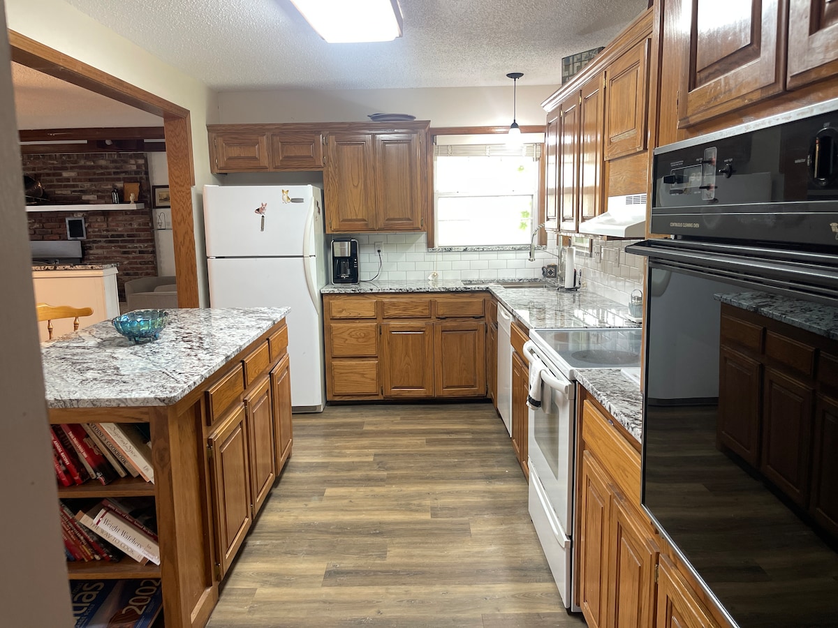 Избегајте на нашиот Airbnb на само 1 милја источно од градот. Сместено во селски амбиент, нашето удобно живеалиште нуди доволно паркинг, покриена тераса со 3 бањи и привлечни места за седење на отворено за релаксација. 3 спални соби, 2 бањи и погодна пералница, во нашиот простор удобно може да се сместат 5 гости. Уживајте во модерни удобности како што се новоинсталирана топла вода по потреба, сосема нова централна единица за греење и климатизација, како и во удобности како што се wifi и кабелска телевизија. Искусете удобност и спокојство во нашето шармантно место за одмор во село!
