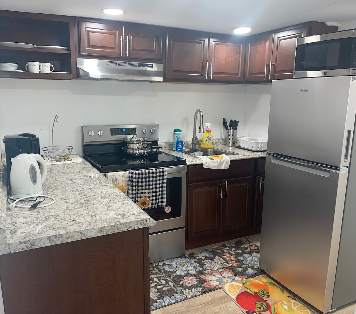 Spacious and modern 1BR suite with a private entrance, perfect for up to 4 guests. Enjoy a comfortable bedroom, open living area, smart TV, dining space, and convenient kitchenette. Located near Molloy University, UBS Arena, hospitals, and Roosevelt Field Mall. This private unit is in a multi-family home, offering comfort, privacy, easy access, self check-in .