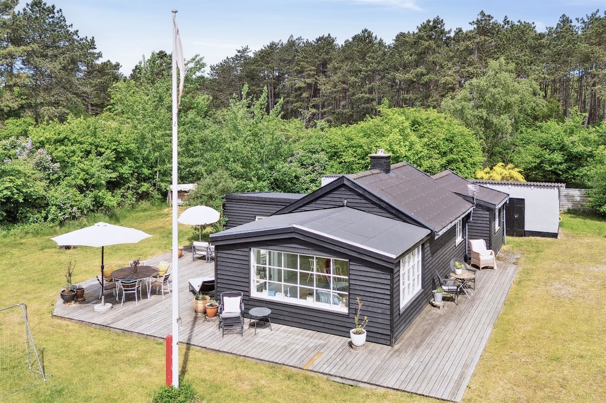 Удобна и убава летна куќа (79 квадратни метри). Во близина на плажата и форестот. Последна куќа на улица пред плажата и само 200 метри до најдобрата и многу погодна плажа за деца во Данска. Голема јужна тераса со многу можности да уживате во сонцето, природата и тишината. Дневната соба има шпорет на дрва со прозорци, како и пумпа за греење и клима уред. Куќата е малку изолирана и нема врева. Куќата е за непушачи.