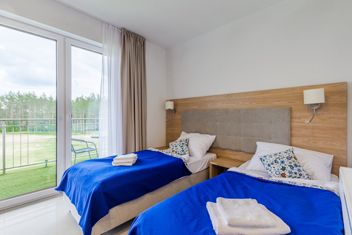Опуштете се и одморете се во овој мирен, стилски простор. Добре дојдовте во модерна , удобна, целогодишна куќа во Кашубија(60 км од Три-Градот). Ви нудиме пространи, целосно опремени ентериери Приземје со трпезарија и комплетно опремена кујна, дневна соба со голем агол на преклопување, камин , TV50" ,тоалет. Кат со три пространи спални соби и бања . Куќата има голема тераса со топла топка, скара, огниште и простор за рекреација во градината.