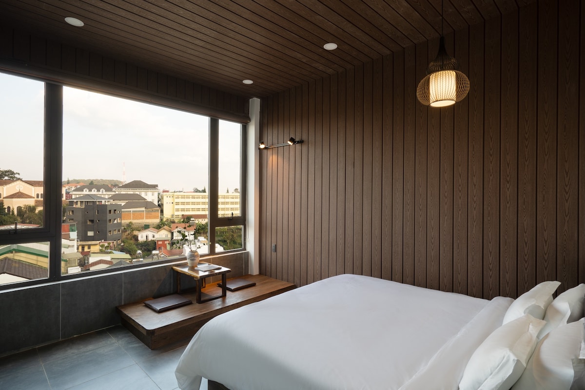 Стандардна соба 2 возрасни лица со поглед на градот со големи прозорци во бутик хотелот Yukkuri се наоѓа во срцето на Далат, на само 1 км од ноќниот пазар.., од тука е многу погодно да одите насекаде во градот Далат, така што оваа локација е многу идеална за да ја изберете кога престојувате во градот Далат,. Ова е сосема нов стан во хотелот Јуккури со модерен и целосно опремен дизајн, затоа се надевам дека ќе имате одлично патување во нашата соба.