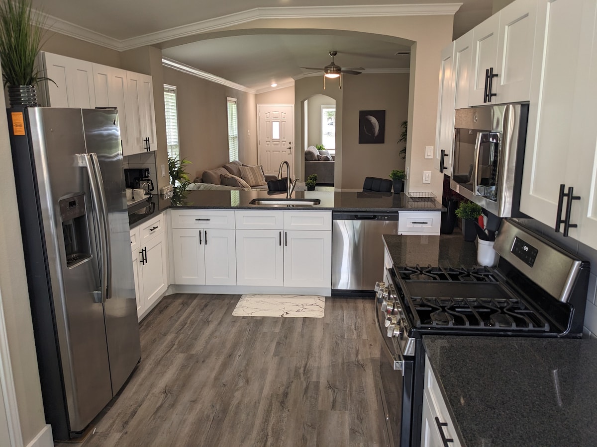 Добре дојдовте во ОРИГИНАЛНАТА куќа за одмор на Airbnb CP/Leander Високи тавани. BIG LR потпрен дел. 65" 50"и 49" ROKU tv's. Тивко соседство со голем ограден двор Пристап до ЗЕЛЕНИОТ ПРОСТОР, потокот, патеките за пешачење и голф со диск. Над 2 миленичиња= 10 долари/ноќевање/милениче. Вечерајте со неверојатен поглед во ресторанот Oasis Под 1 милја до Rt. 183 под 20 минути. Домен 1,3 милји до ХЕБ ЦЕНТАР 2 милји до Горното место 20 минути. до Калахари 24 милји. d 'town ATX Не се дозволени бродови,џет скии,мотоцикли, приколки
