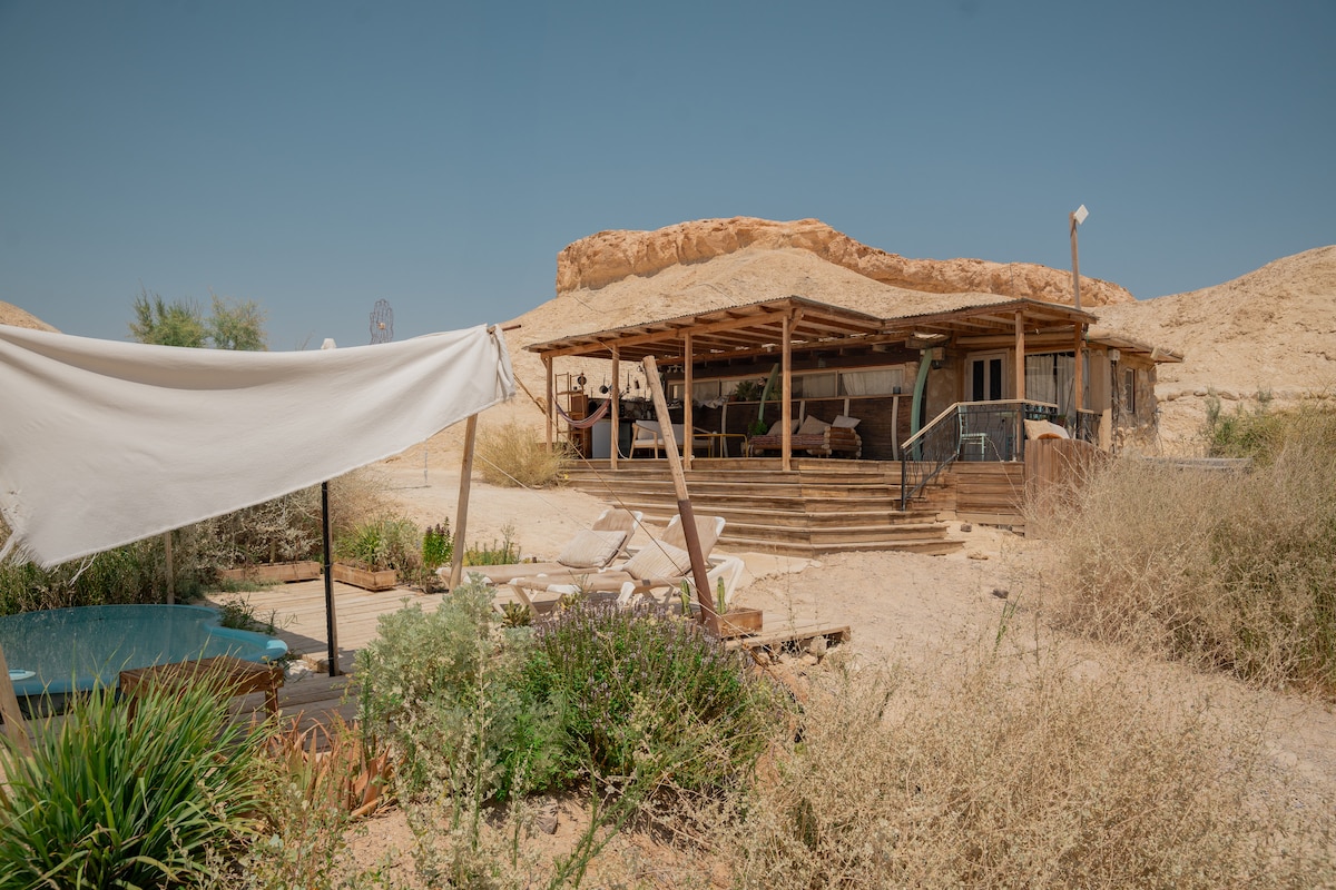 Тајната на Моа се открива во Средната Арава, во изолирана пештера што ја ископавме во карпата на планината, од која гледа кон бескрајните простори на пустината. Луксузен балкон, хидромасажна када, приватно стакло, комплекс со логорски оган под месечева светлина и ѕвезди; сѐ што ви е потребно за да се исечете од расата на животот и да се нурнете во пустинската тишина.