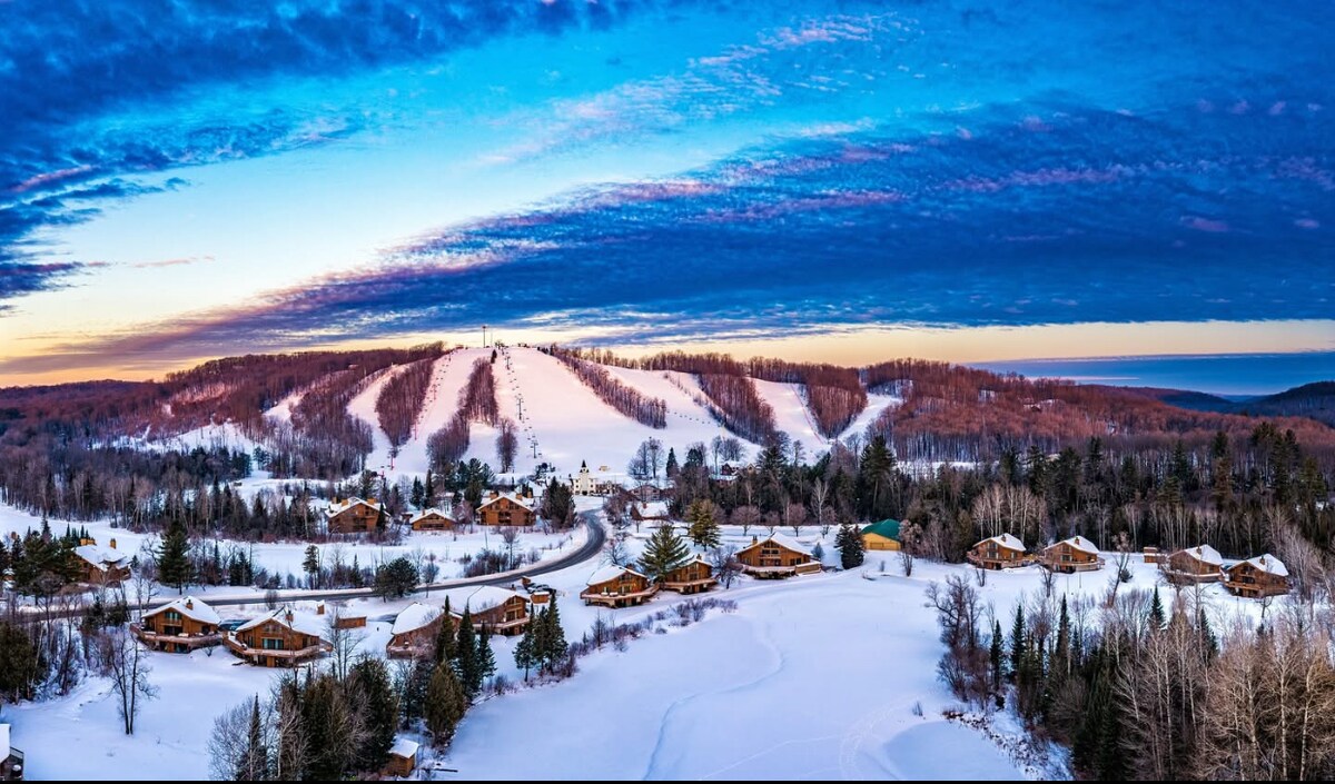 Опуштете се и заљубете се во убавината на Северен Мичиген во нашата дрвена колиба. Совршено се наоѓа директно на голф-теренот Fountains во Premier Garland Resort. Уживајте во пространа дрвена колиба со 2 спални соби и 2 бањи која ги вклучува сите удобности на домот, вклучувајќи целосна кујна, камин на плин, пространа тераса со скара на плин за да направите извонредни вечери. Без разлика дали одите на скијање, лов, моторни санки, риба мраз или ви треба само тивко бегство, ќе ви се допадне нашата колиба на патеката!