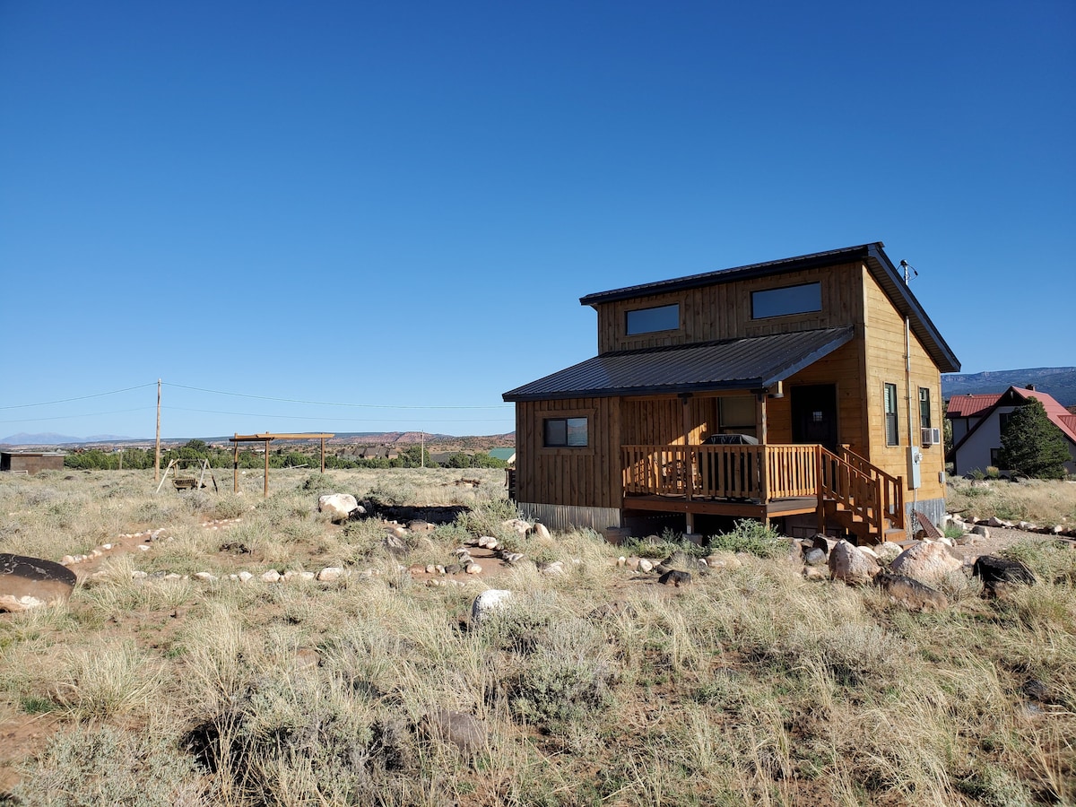 2023 Најпријатен домаќин во Јута! https://news.airbnb.com/airbnbs-most-hospitable-host-in-every-us-state/ Опуштете се во нашата приватна дрвена колиба во близина на градот Тори и 5 милји до влезот на националниот парк Капитол Гребен (11 милји до Центарот за посетители). Овој минијатурен скапоцен камен е изграден со љубов со нашите две раце. Уживајте во погледот од 360 степени на живописните пејсажи во тивко и мирно опкружување полно со диви животни.