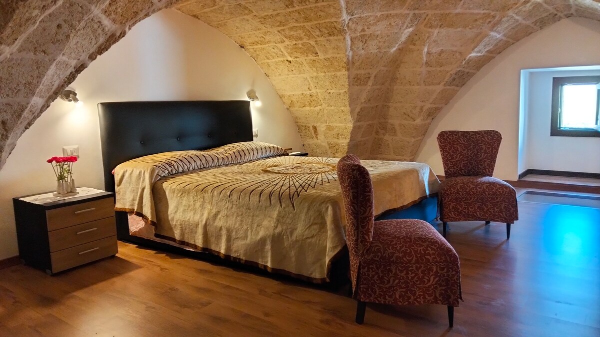 La casa, ristrutturata nel rispetto della sua autenticità, si trova nel cuore del centro storico di Matino, in una delle corti più antiche, a ridosso del Palazzo Marchesale. E' ideale per trascorrere le vostre vacanze in assoluta tranquillità pur stando a pochi km da Gallipoli e dalle spiagge più belle del Salento. Si tratta di un attico con tre terrazze, di cui una panoramica dalla qualle si possono ammirare le case bianche del paese, la campagna salentina e il mare di Gallipoli con il faro.