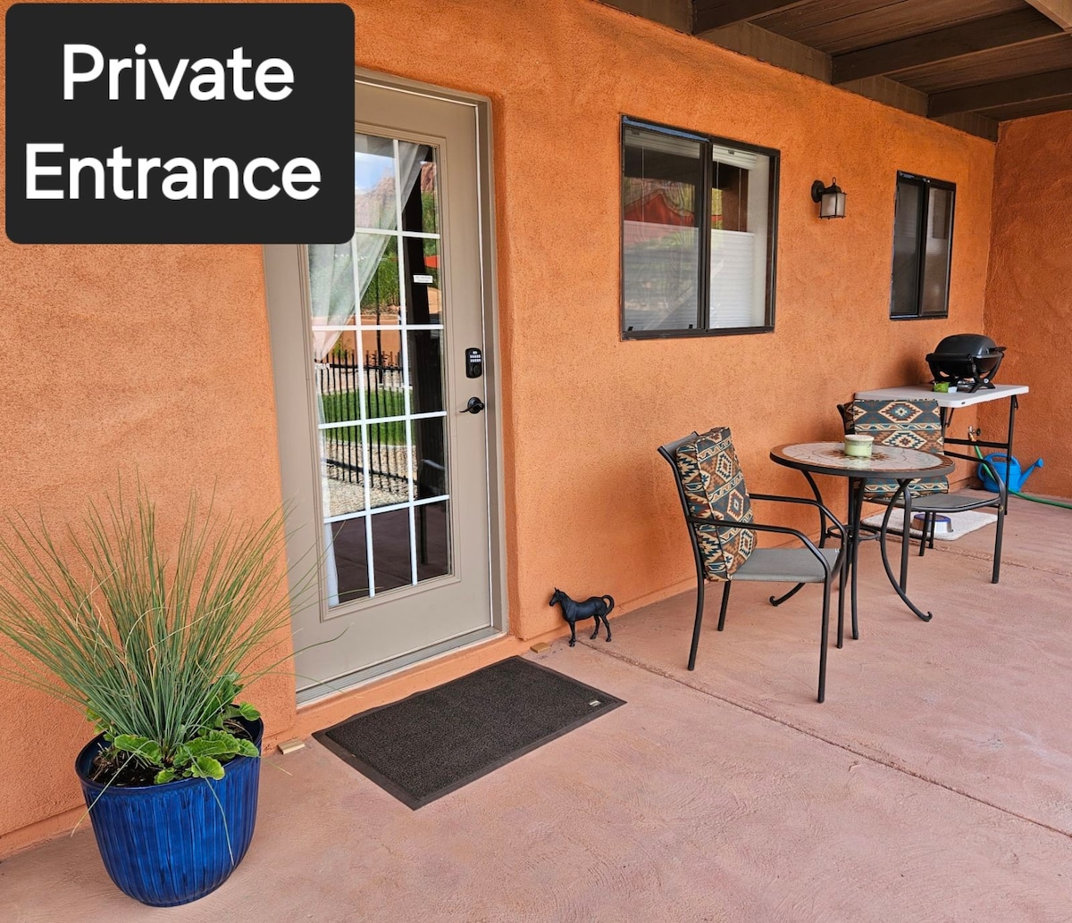 View of Zion 1 bed casita. Patio/private entrance