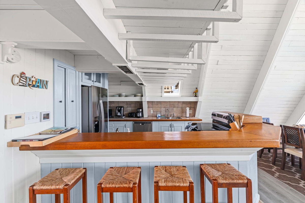 Прекрасно ажурирана ознака од 1970 година на плажа со многу модерни и луксузни детали во текот на 1970 година. Најниското ниво е опремено со соба со брачен кревет, простор за седење (футон се претвора и во кревет) со телевизор и бања. Главното ниво има брачна спална соба, бања, многу удобен дневен простор со трпезариска маса до осум седишта, модерна кујна опремена со сѐ што ви е потребно за краток или долг престој! Поткровјето на горниот кат има два брачни кревета и двоен дневен кревет. Надвор, океанот ве чека!