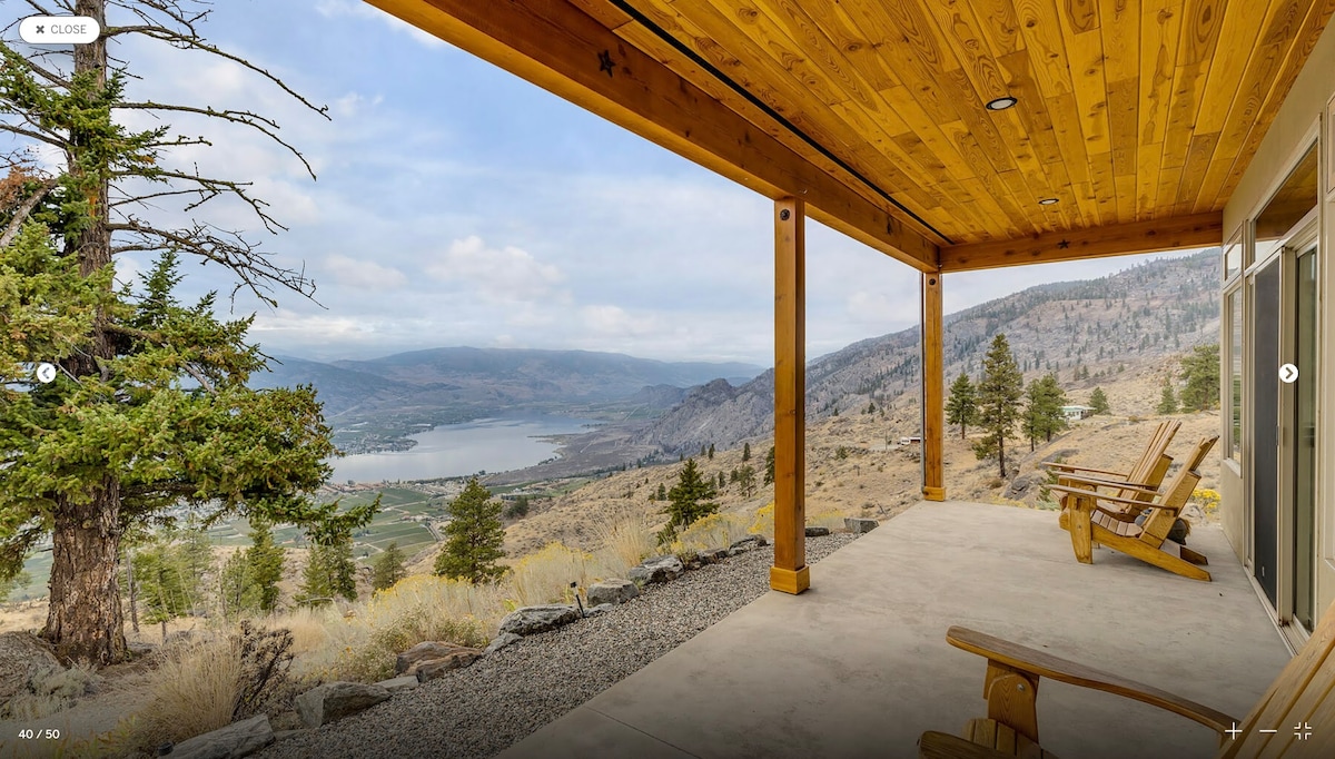 Вила-базен на ридот |Хидромасажна када|Брачен кревет (широк 180 - 200 см) | Поглед кон Оканаган