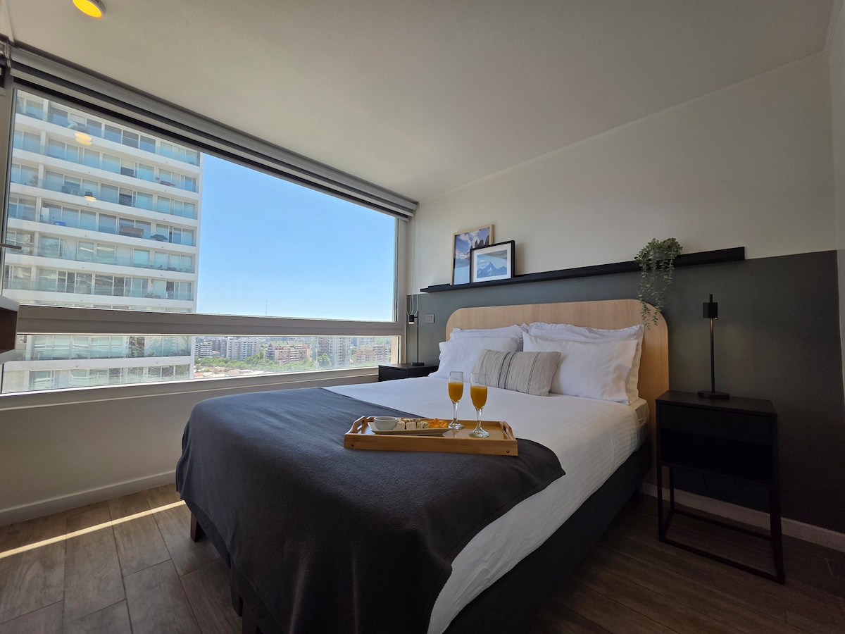 Уживајте во модерен, светол и внимателно уреден стан. Целосно опремен за удобни престои, има двоен кревет, кауч на спуштање, интегрирана кујна, паметен телевизор, wifi и балкон со јасен поглед. Се наоѓа во безбедна и поврзана област на Сантијаго, идеално за одмор или работа. Топол, функционален простор со внимание на секој детаљ за да се чувствувате како дома. Одлична локација: во близина на Plaza ñuñoa и Mall Portal ñuñoa, спортски центри. Со добар превоз.
