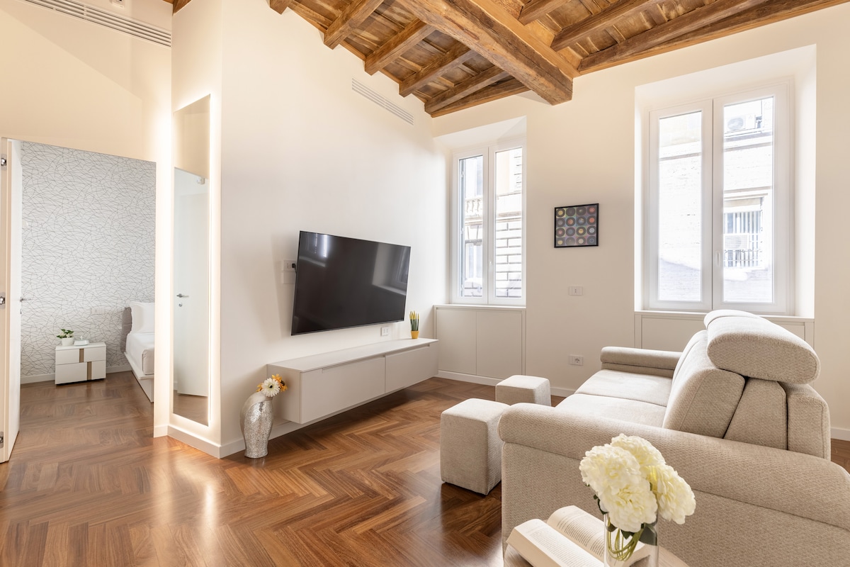 - Панорамско поткровје на една од најдобрите улици во Рим на само неколку чекори од Пјаца ди Спања. - На само неколку чекори од главните жаришта за разгледување знаменитости. - Исклучително добро позициониран и поврзан со сите поголеми транспортни системи. - Сала за вежбање на неколку чекори од вас. - Електрични ролетни на прозорците. - Многу тивко. - Дизајнерски мебел и додатоци. Многу безбедно. - Големи прозорци. - Сончева тераса со големи каучи и трпезариска маса. - Лифт за стол за багаж. - Можност за ангажирање на приватен возач до и од аеродромот.