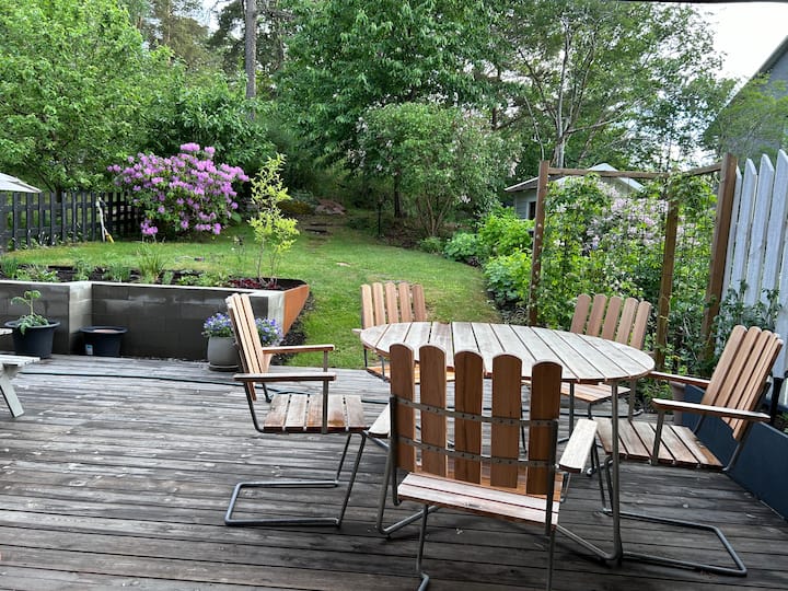 - Сместувања за изнајмување со простор за седење на отворено за одмор во Солентуна