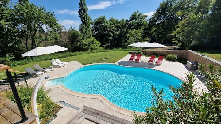 Опуштете се покрај базенот, уживајте во натпревар на приватниот тениски терен или останете активни во салата. Мирната околина и големите внатрешни простори, исто така, го олеснуваат читањето, пишувањето или работата удобно на големата трпеза со брз Wi-Fi со оптички влакна.