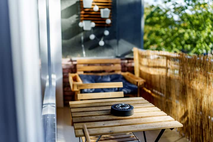 Модерен стан „Оаза“ со балкон, во близина на главната железничка станица