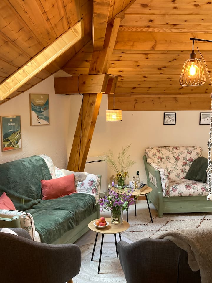 Шармантен дуплекс со јужен изглед (T3 + планински агол) реновиран во топла атмосфера и на 10 минути пешачење од падините. Двојна изложеност.