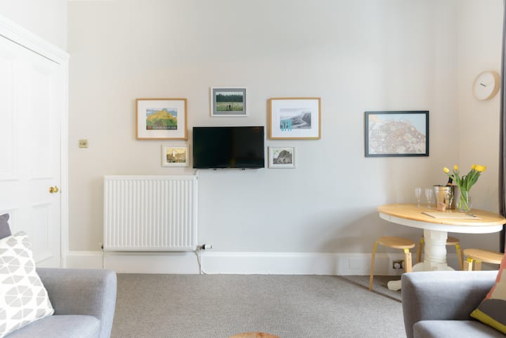 На првиот кат од една од традиционалните згради во Единбург, овој стан со две спални соби е живописен и свеж. Пространиот, удобен ентериер е убаво опремен и декориран во нашиот индивидуален стил со мешавина од нови, ретро и луксузни парчиња. Очекувајте ги сите удобности на бутик хотел, со доволно простор за да се опуштите и да ја испланирате следната авантура во Единбург.