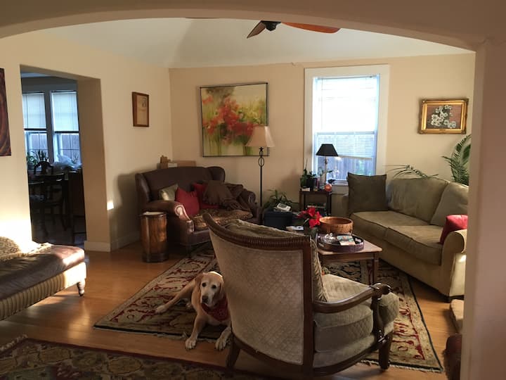 Живеам во оваа куќа со 5 спални соби со моите кучиња Дејзи, Жак и Кора во стариот Источен Далас... 2,2 милји до памучниот сад и 2,7 до центарот на Далас.