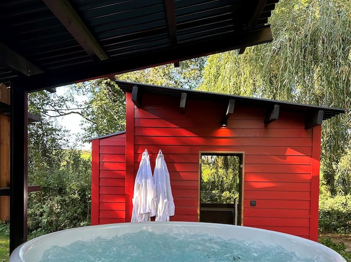 Опуштете се со надворешен туш, сауна и џакузи.