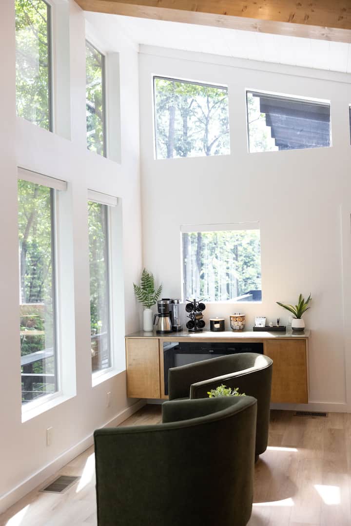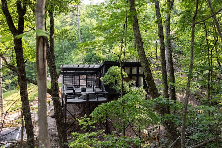 Куќа на дрво со приватна тераса, хидромасажна када и огниште