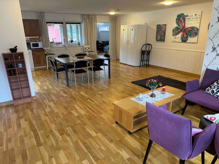 Отворени простори, многу прозорци, 8 соби со 2 бањи и пералница. Огнена јама. Сауна. Паркет од даб. Трем, инфрацрвено греење. 3 езера во соседството. Централно греење. Стерео Hifi во 3 соби. 3 телевизор. Моторизиран прилагодлив кревет и биро. Убаво место со хармонија и прекрасни доживувања во природа. Селото е добитник на награда за најдобра соседска заедница во меморијалното место на TV Metallica Dörarp check the web!