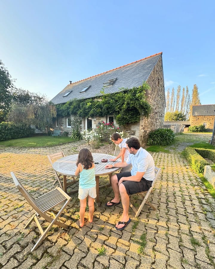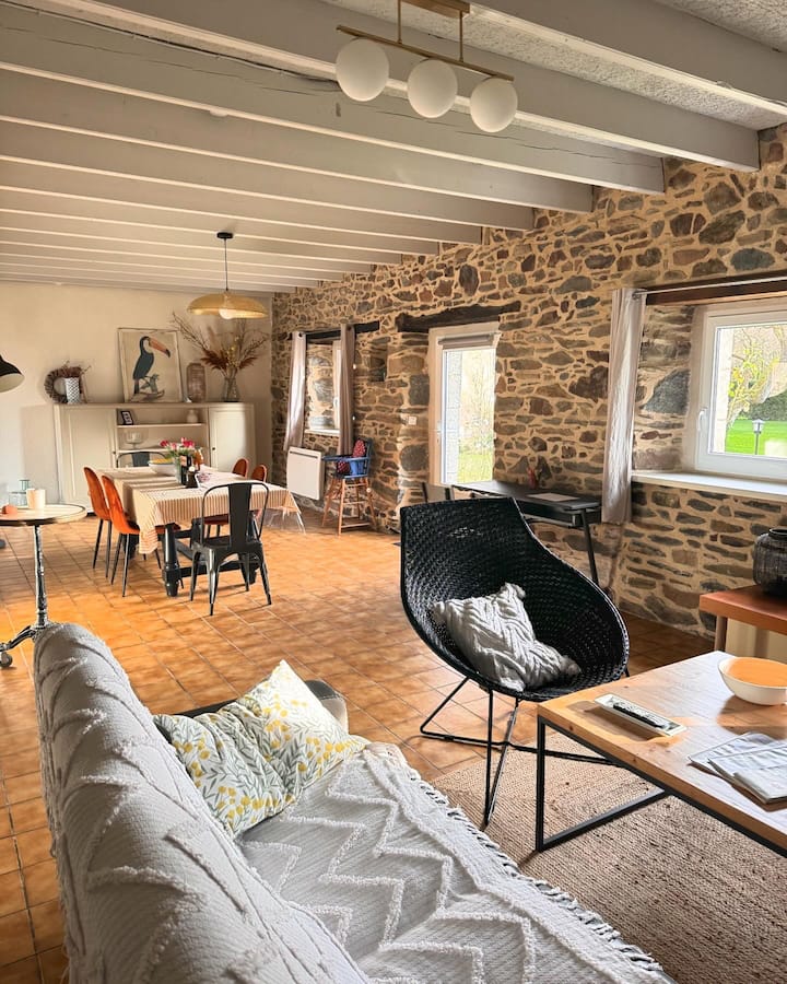 Во автентичен и релаксирачки амбиент опкружен со зеленило, сите удобности и благосостојба се достапни, надворешната хидромасажна када за да се опуштите и да уживате во овој прекрасен регион Бретања.