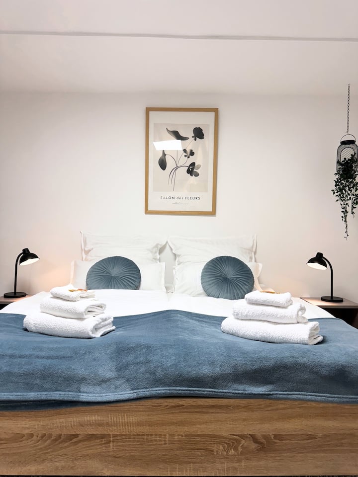75 квадратни метри, приватна бања, кујна, дневен престој и спална соба