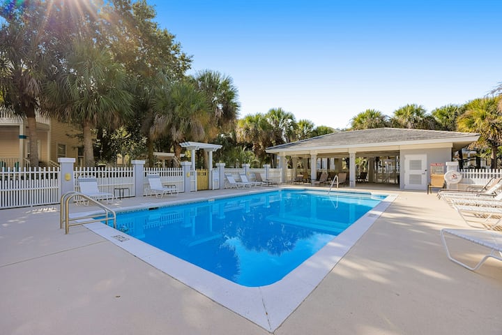4BR место за одмор на плажа со базен и поплочен двор - во близина на голф