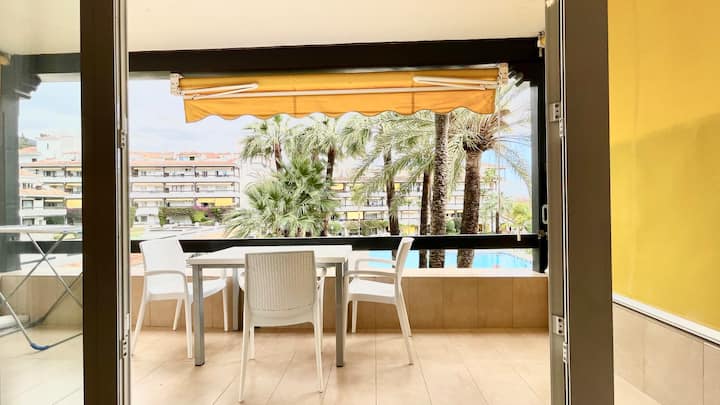 Студио со поглед кон базен во близина на плажа