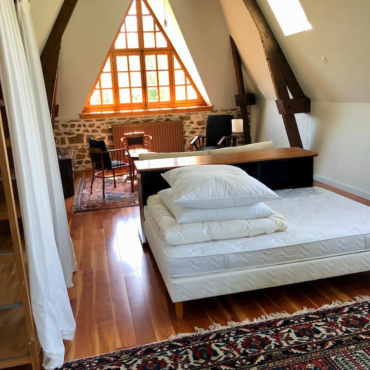 - Сместувања за изнајмување со простор за седење на отворено за одмор во Cerisy-la-Forêt