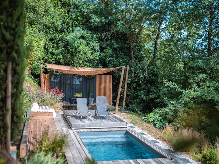 Во срцето на шепотењата на природата, каде што времето изгледа суспендирано, откријте исклучително засолниште: вилата Horizon P'y. Овој архитектонски скапоцен камен грациозно се вклопува во шумскиот пејзаж на Лорагаис, нудејќи жив спектакл на зелени долини и величествени Пиринеи. Замислете место каде што големите заливски прозорци ја покануваат природната светлина да танцува во секој агол, создавајќи жива слика на надворешниот свет.